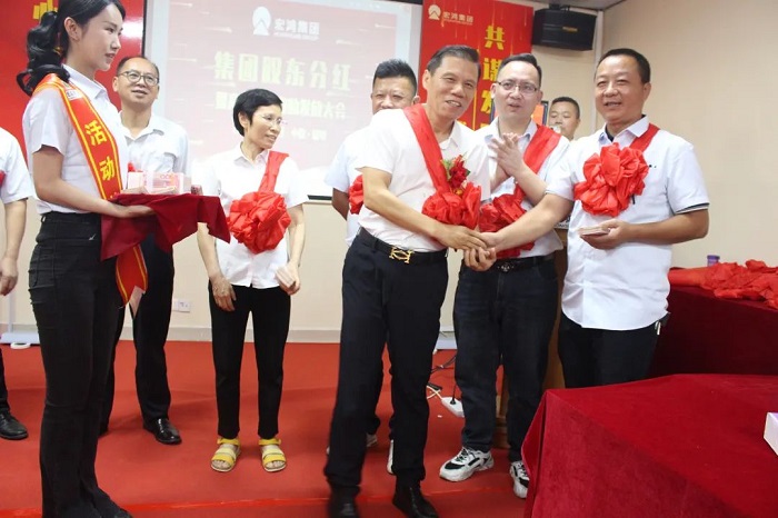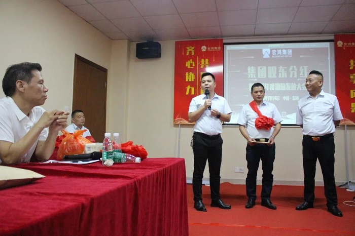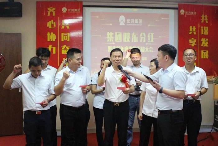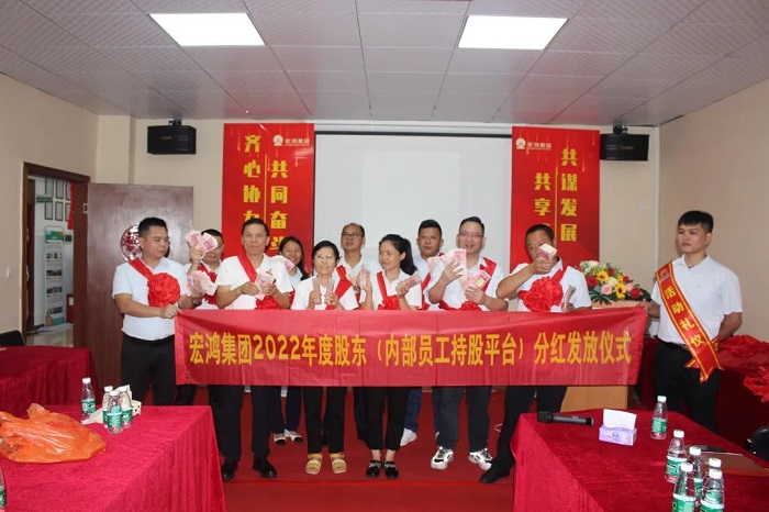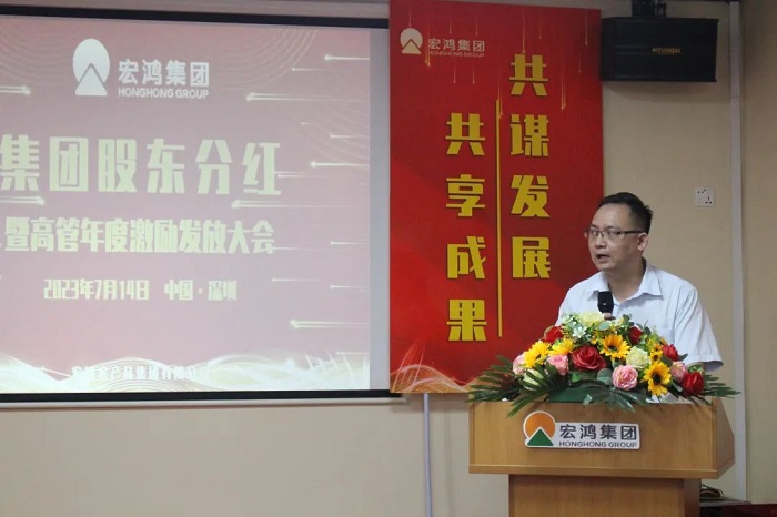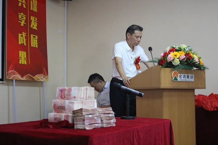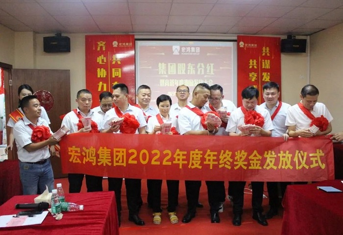 今天集團在這裏舉行分紅和獎金發放儀式,既是對大家付出的肯定,更是集團落實分享文化的事實體現。2023年集團將不斷夯實現有基礎,品牌、業績、效益將會大幅提升,同時分享力度也會更大,希望全體同仁一起努力奮鬥,共同成就一番事業!